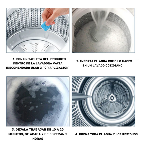 - Con las pastillas de limpiado profundo tienes una fórmula efectiva para descomponer esas acumulaciones y cualquier otro tipo de suciedad que pueda estar afectando tu salud y el rendimiento de tu lavadora
